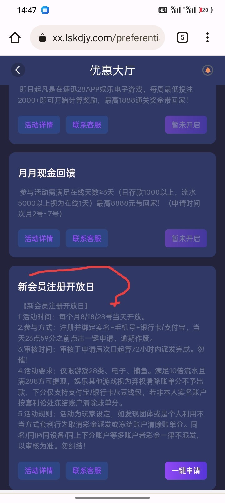 每月8~18号~28号。注册的新用户即可申请,下载app绑定基本信息,在优惠中心一键申请
