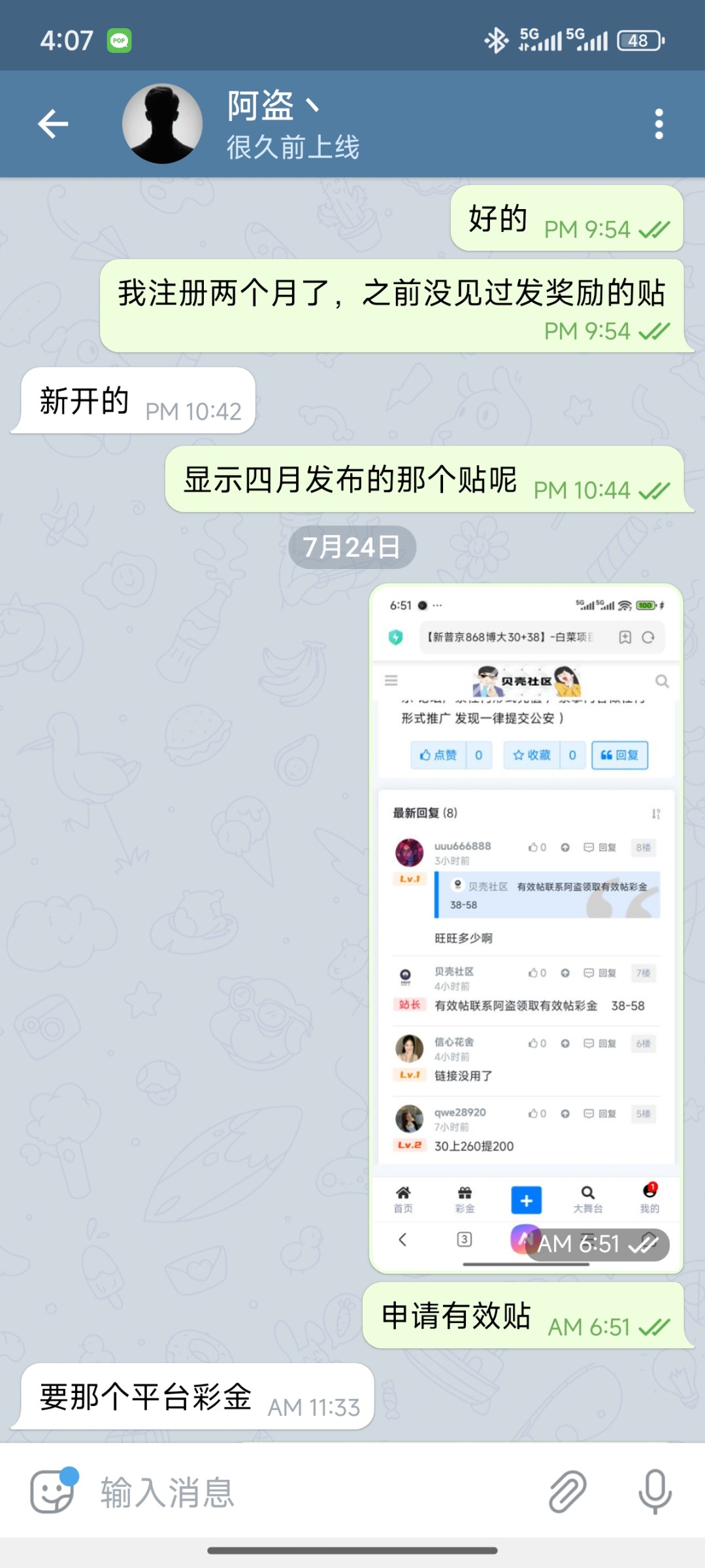 虽然你们的吃我也眼红但是没办法,没那个运气,当不了千里马就当个小伯乐。(有效贴是彩金奖励,由于盗哥推的台子我都有账号送了彩金也没用,可能看我发帖发的辛苦破例给了个口令(„ಡωಡ„)栓Q