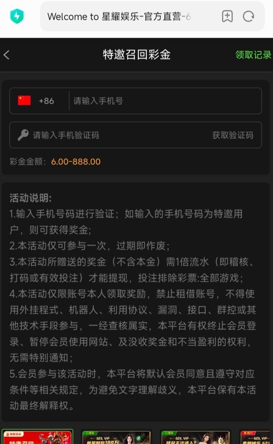 【星系列-召回彩金8/888】