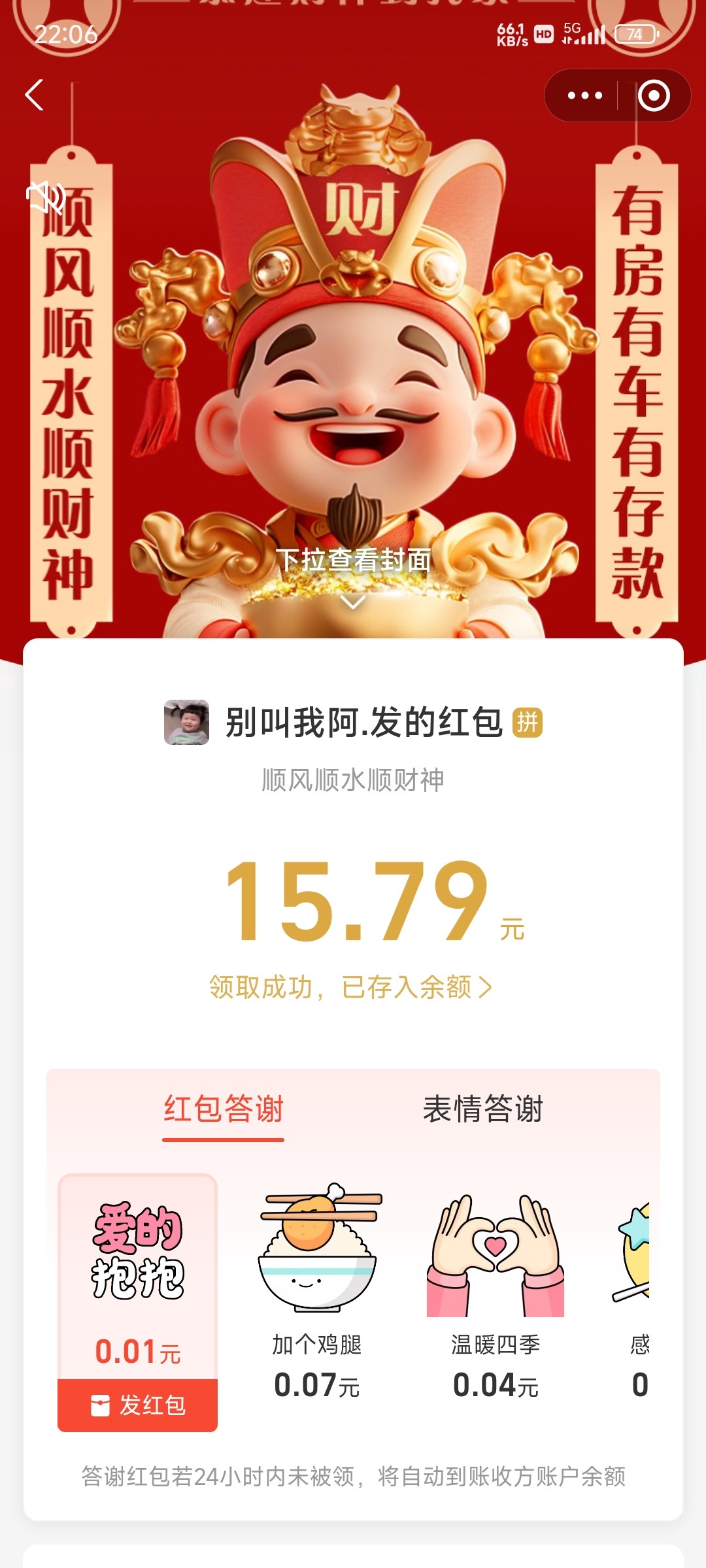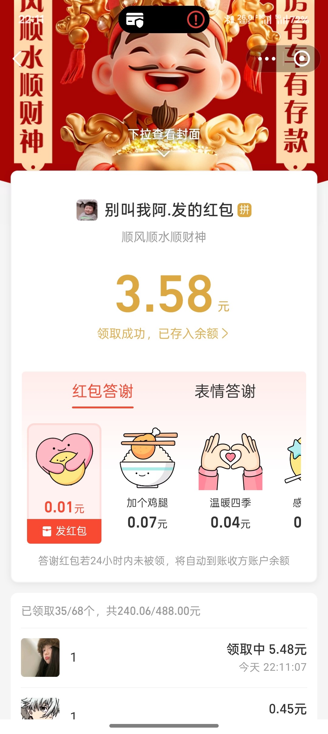 新鲜的,贝壳群里发的红包
