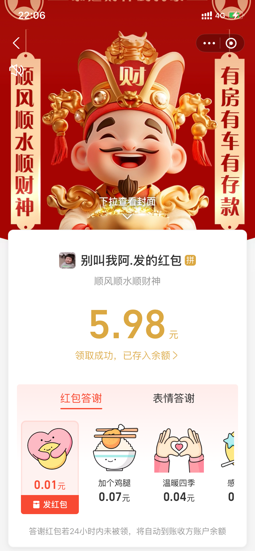 挑战最少红包。