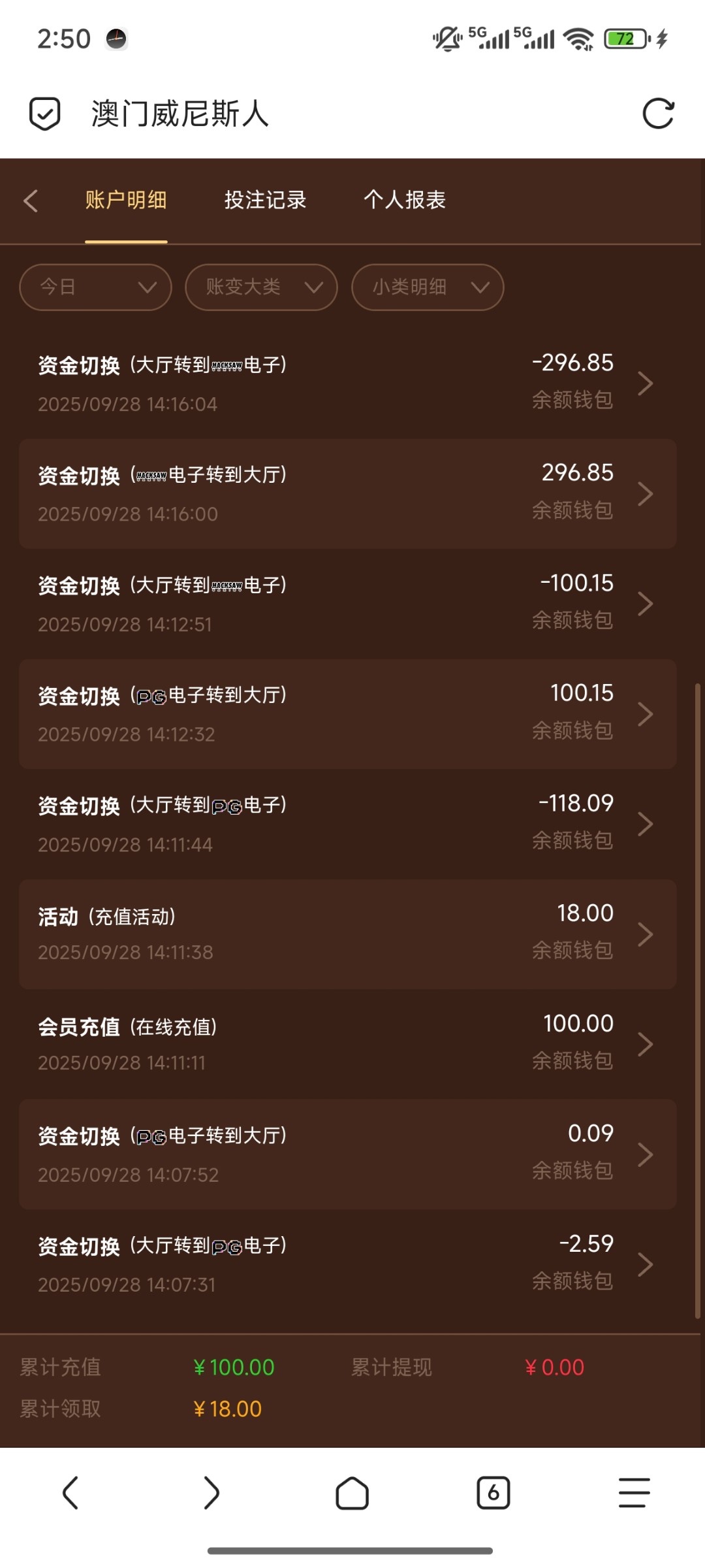 我参加特邀领了88彩金打死了 想着上100参加那个首存送18的活动 打到800不给提 跟我说特邀彩金最高只能提200 跟我解释说必须提款一次这个特邀活动才算结束 真的纯纯傻逼 不要充值了 估计是半黑的