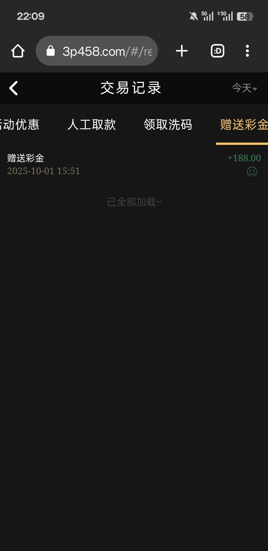 有号的去看看,刚登录上去有188今天送的,应该是国庆神秘彩金,没有的不要喷我,网址 www.3p458.com
