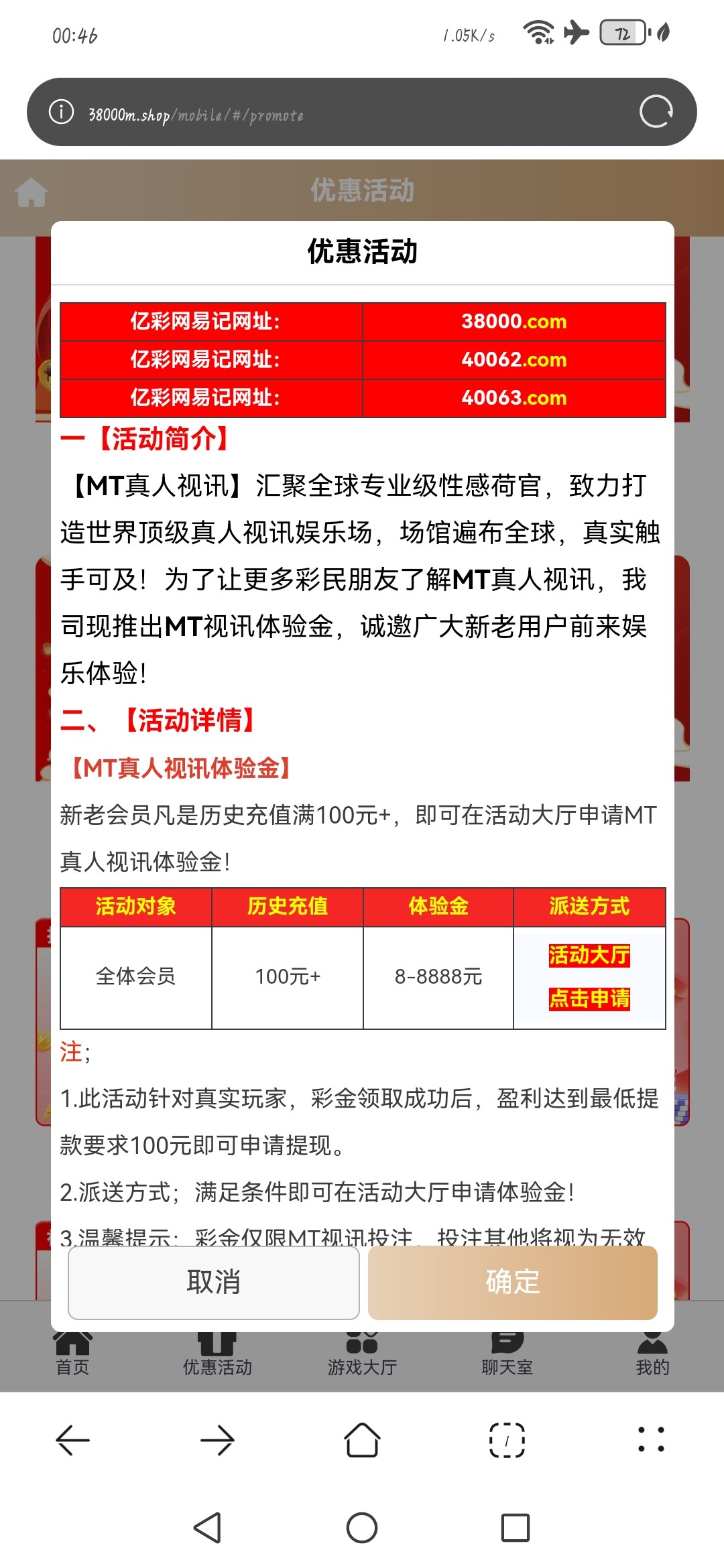 自己上线申请,看自己活跃度,最低8彩金