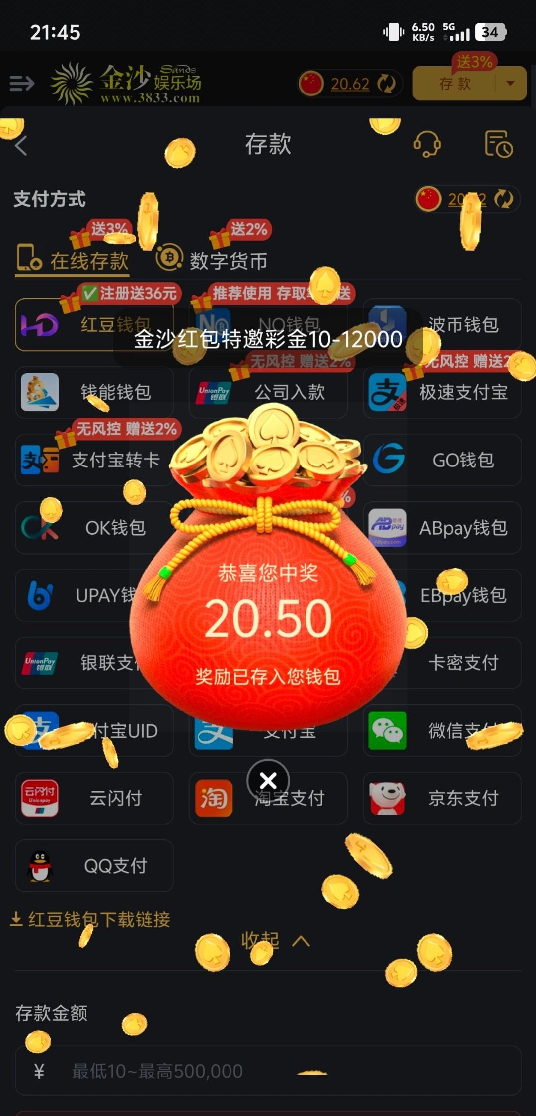 【金沙3833-特邀福袋彩金】