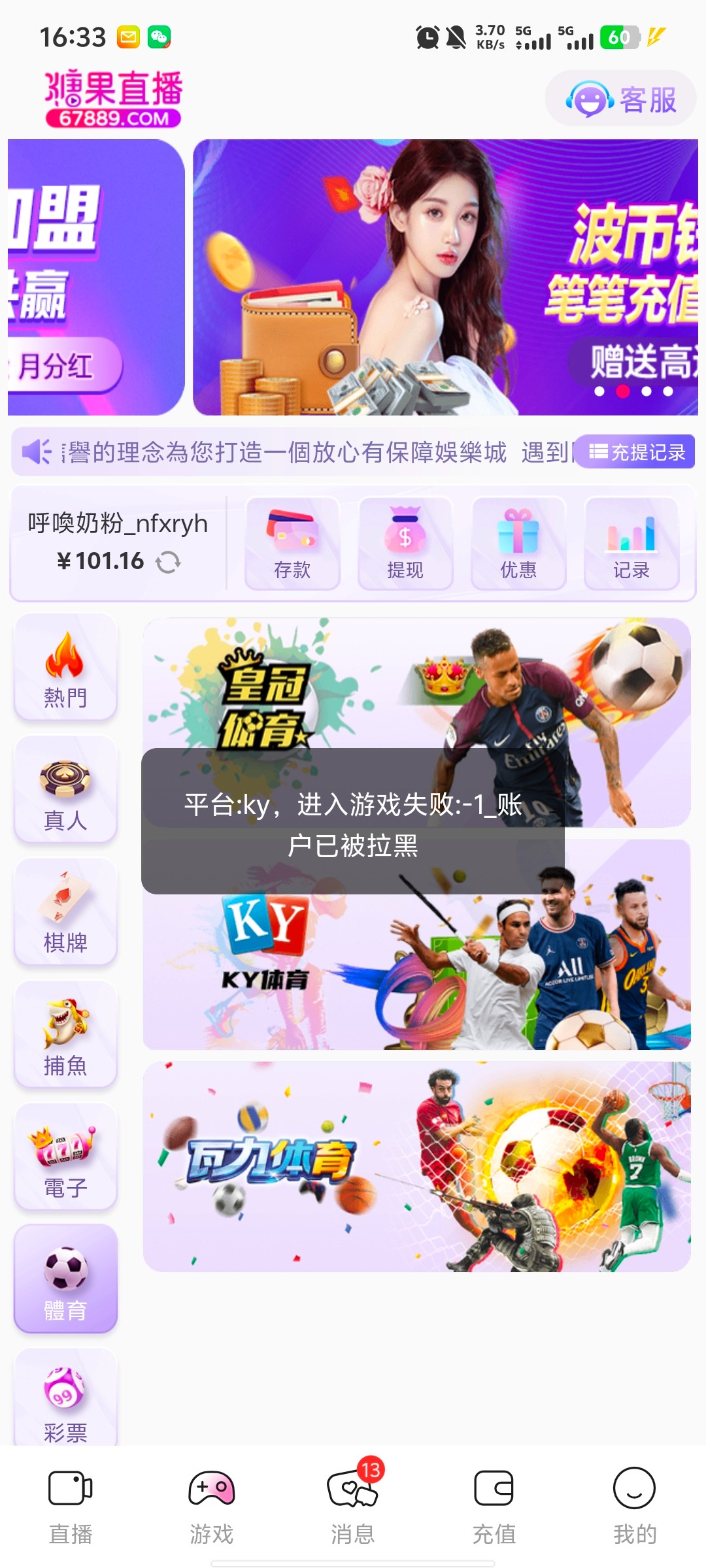 【糖果直播】彩金拉黑