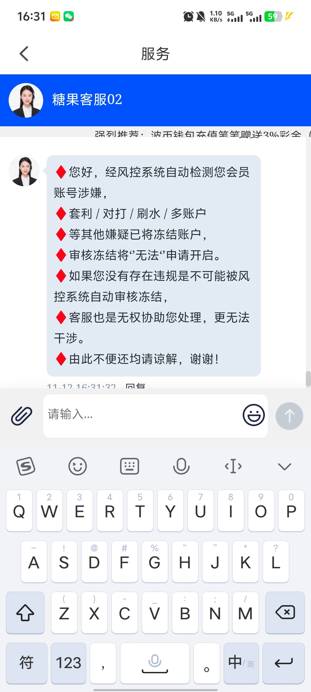 qw826835 没黑我 上次我也送了38 下了100