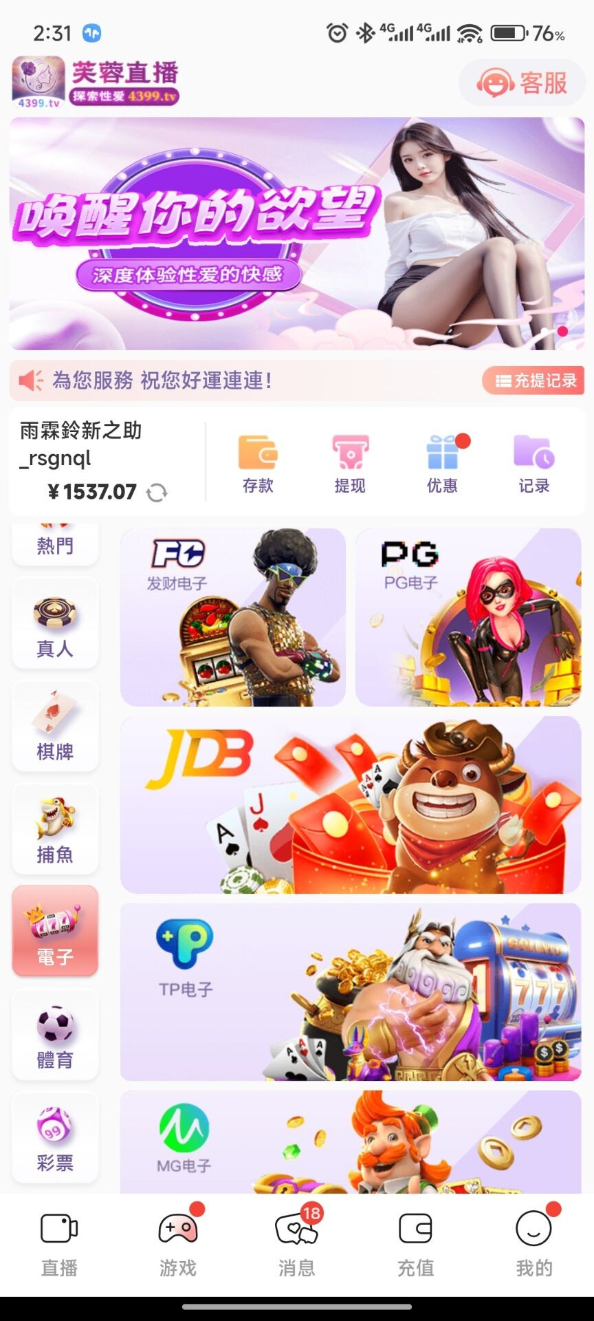 接到电话送了10,没想到没黑还给提了。4399.tv