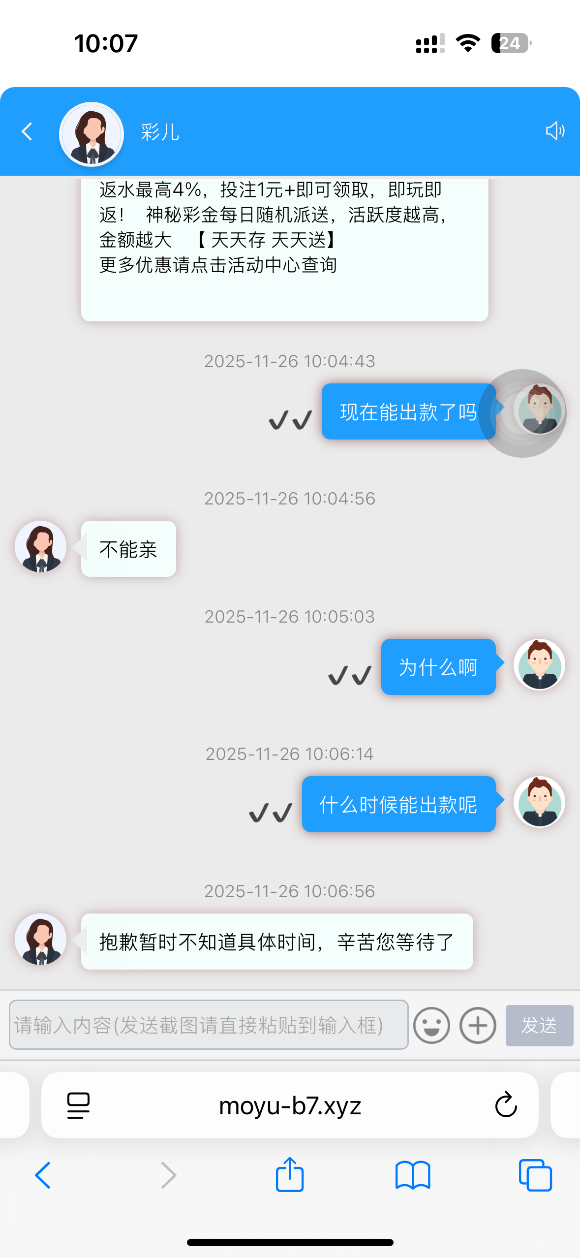 【高兴娱乐】有人出过款吗?我上100下900出了一天没到账