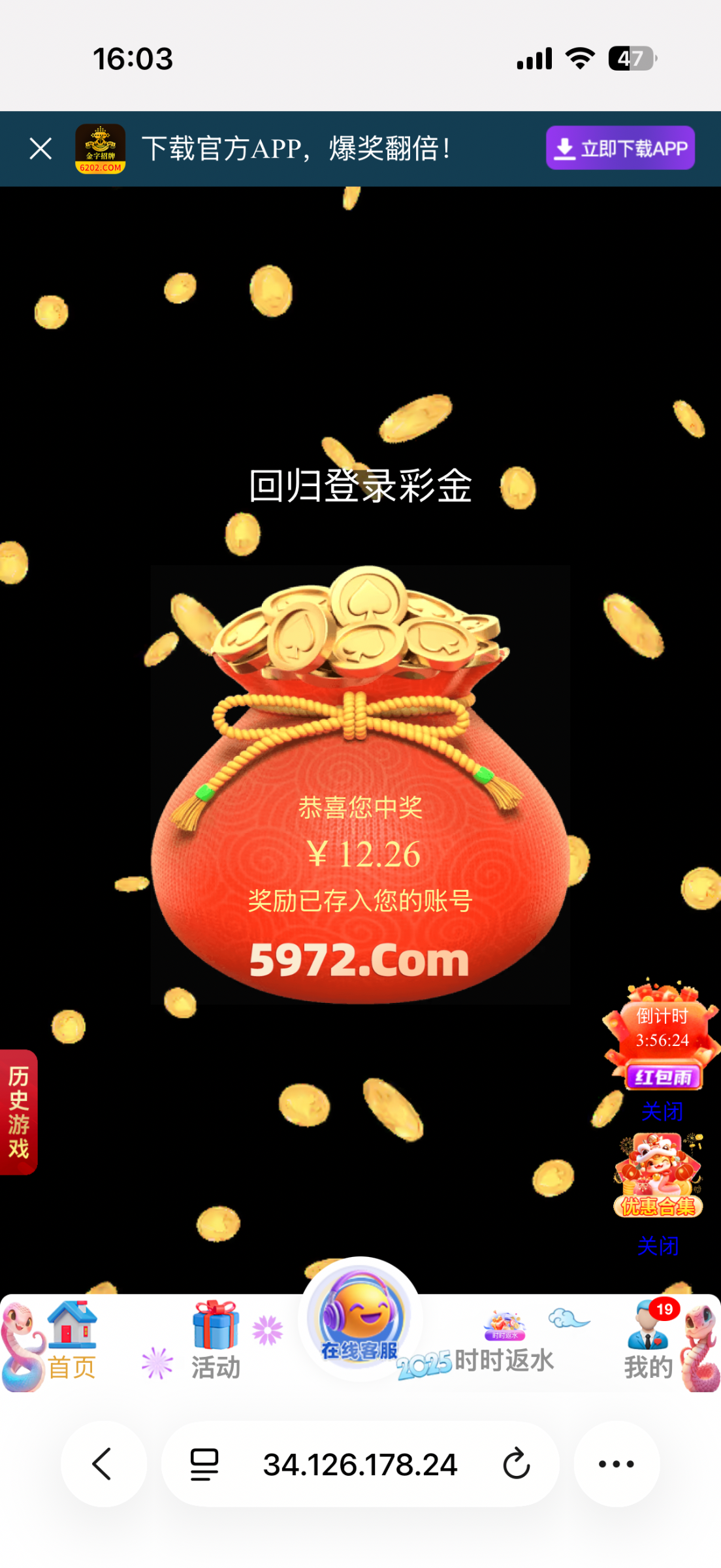 【普京58777】回归彩金