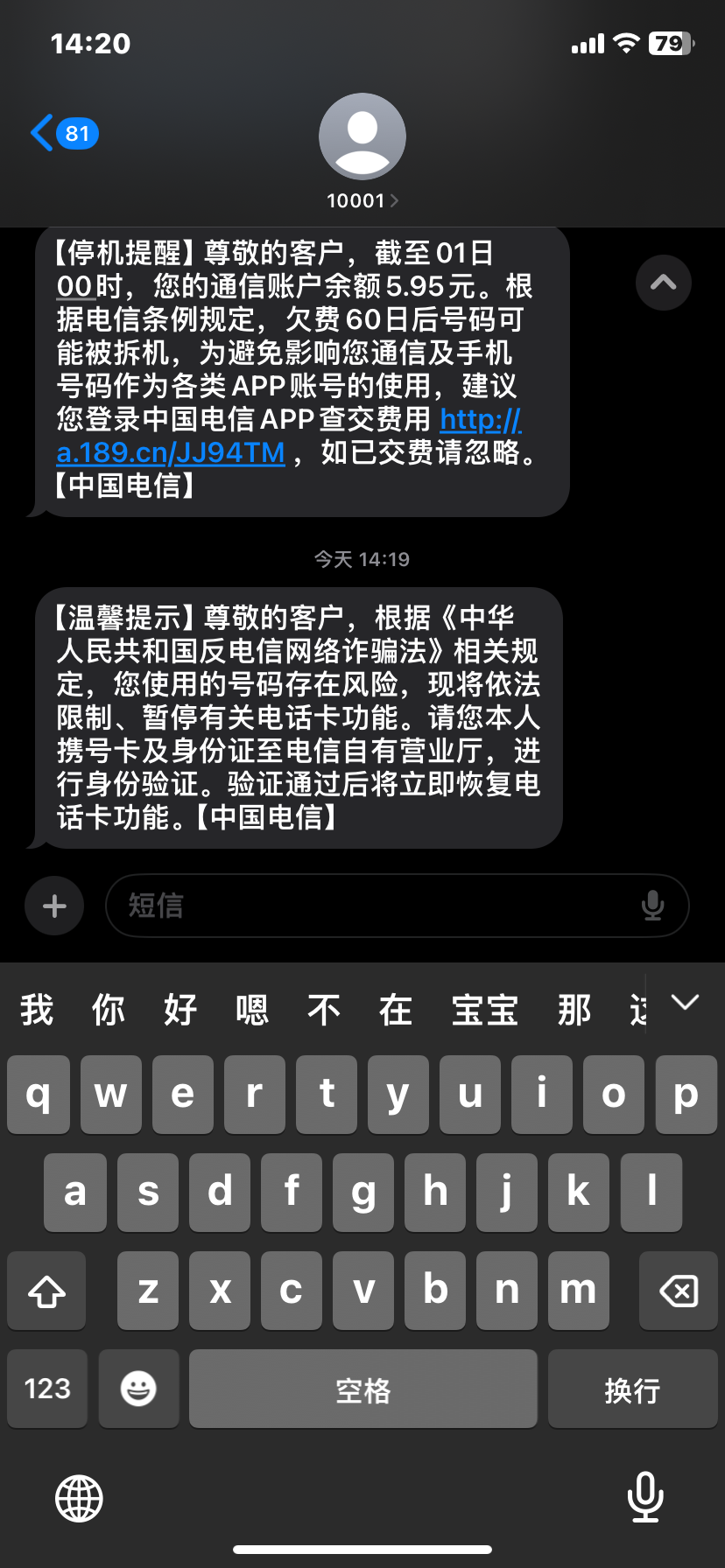 反诈严重的地区最好是别发这种国外短信,切记。