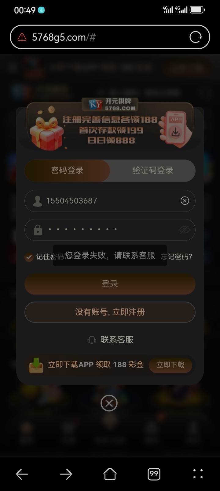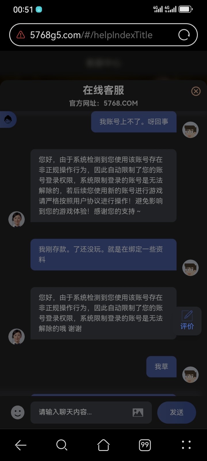 5768.com开元棋牌。大伙防止被黑呀。我存完款。没玩呢。账号就被限制登陆了