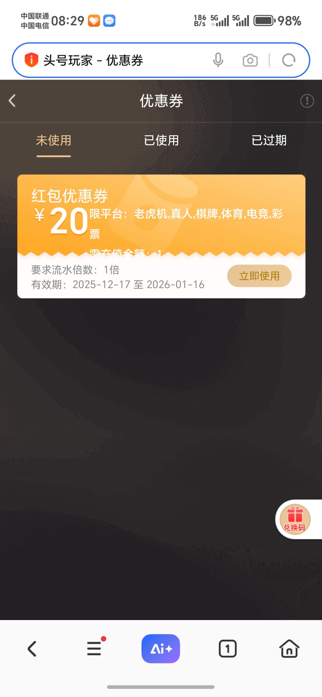 前两天刚送20优惠券没打出来