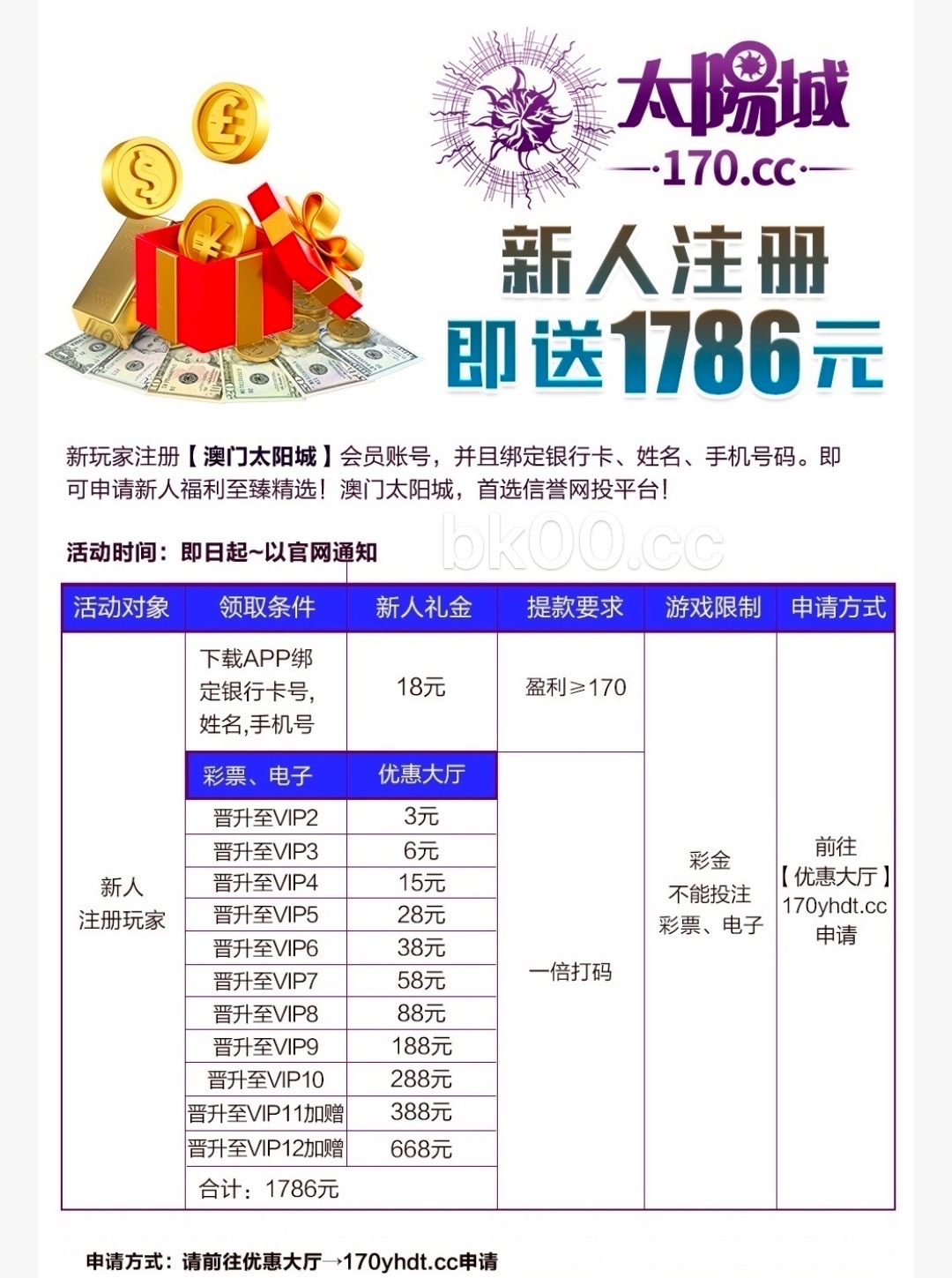 活动:新用户注册绑卡优惠大厅自助申请申请18彩金/170提