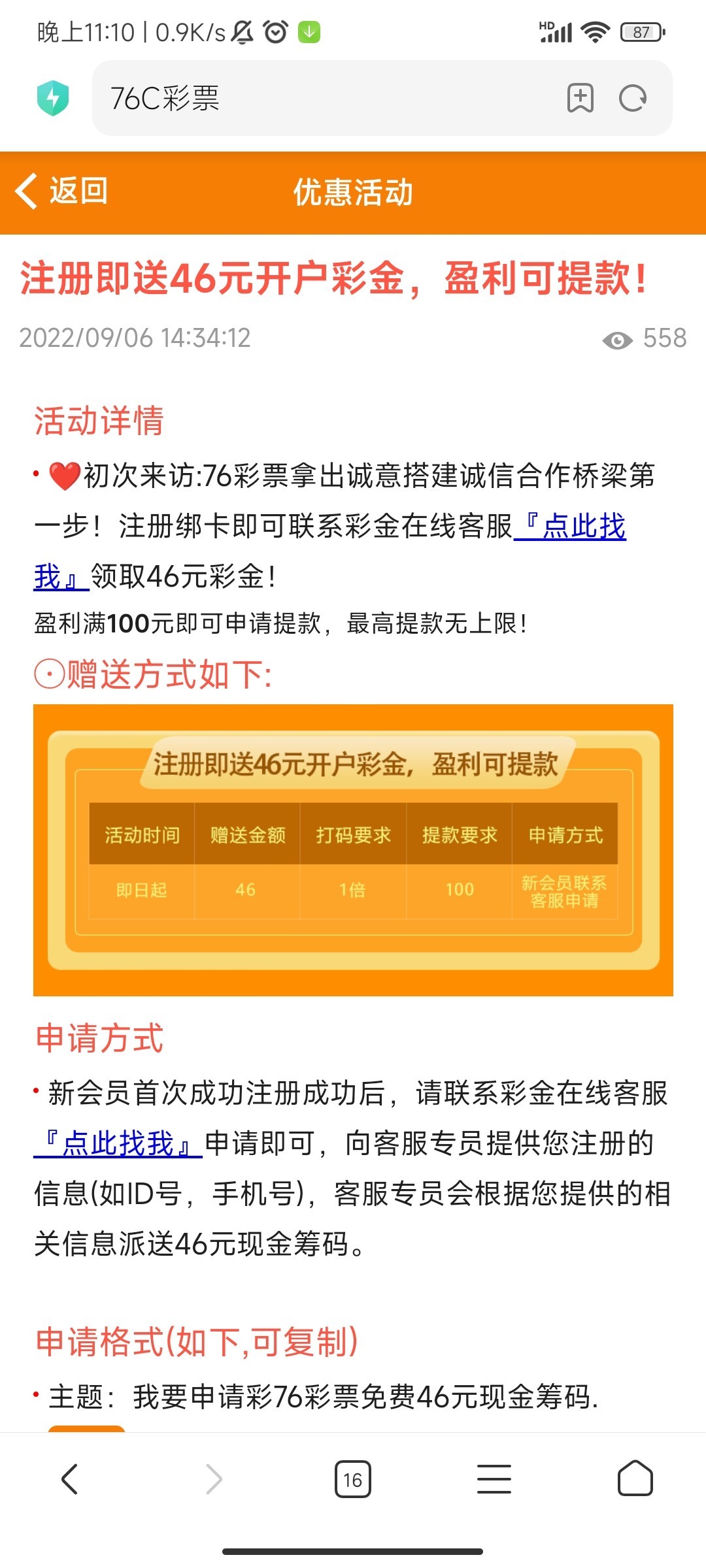 新用户注册绑卡在线客服申请46彩金 一倍流水100提