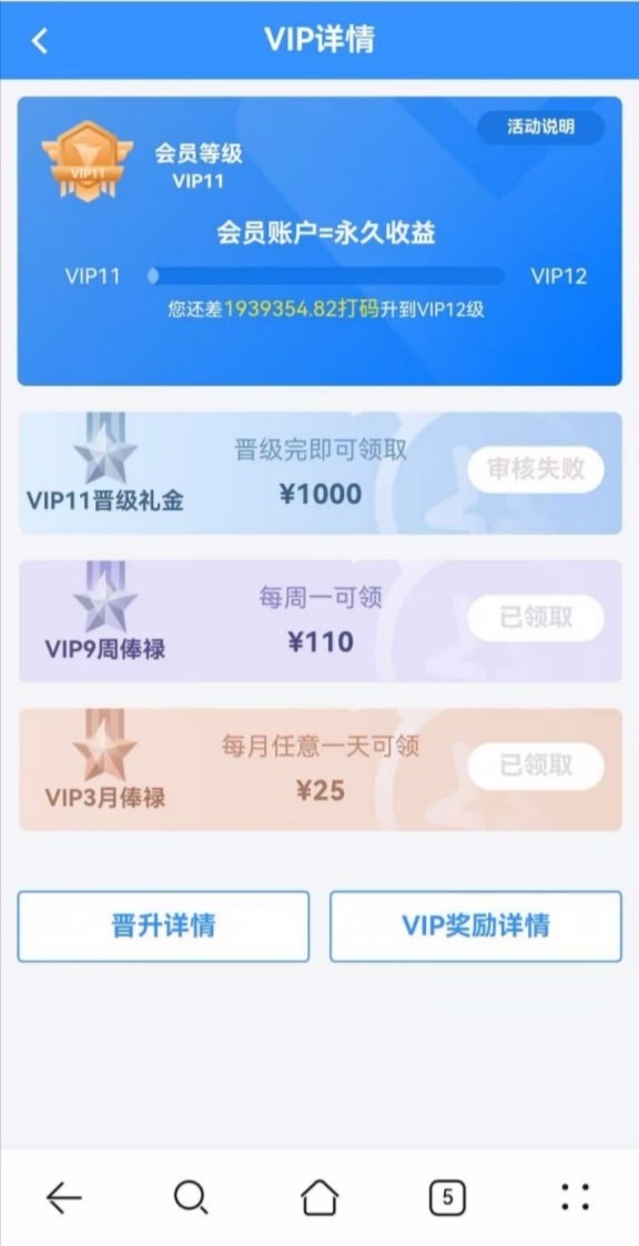 ss8366.com前几天看到论坛有个老哥说这个台子可以碰瓷白嫖88,去了没碰瓷成功。误打误撞白嫖了个VIP11的等级,周俸禄和月俸禄直接拉满。
