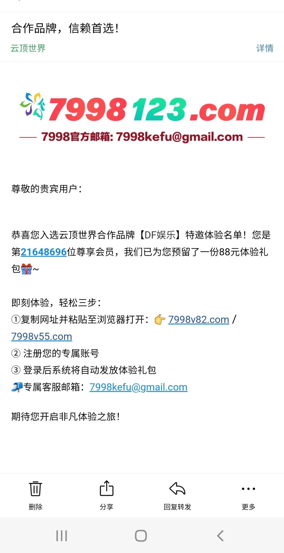 邮箱特邀:翻一翻邮箱看一看有没有收到此类邮箱联系在线客服申请88彩金 提现建议用钱包