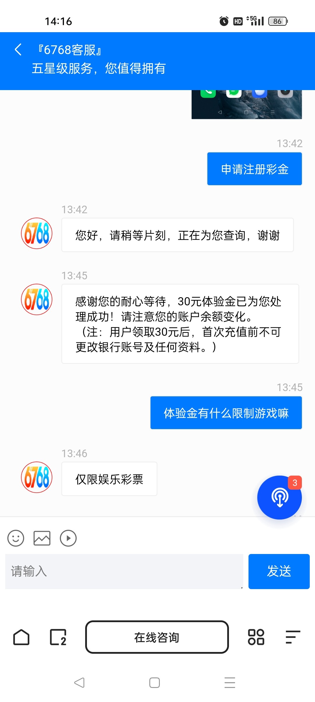 新用户注册秒30元,如果申请不到。就晚点再去,禁止充值!